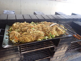 薪を使って火をおこし、焼きそばをつくります。仲間と協力して野外でつくった焼きそばの味は、格別です。