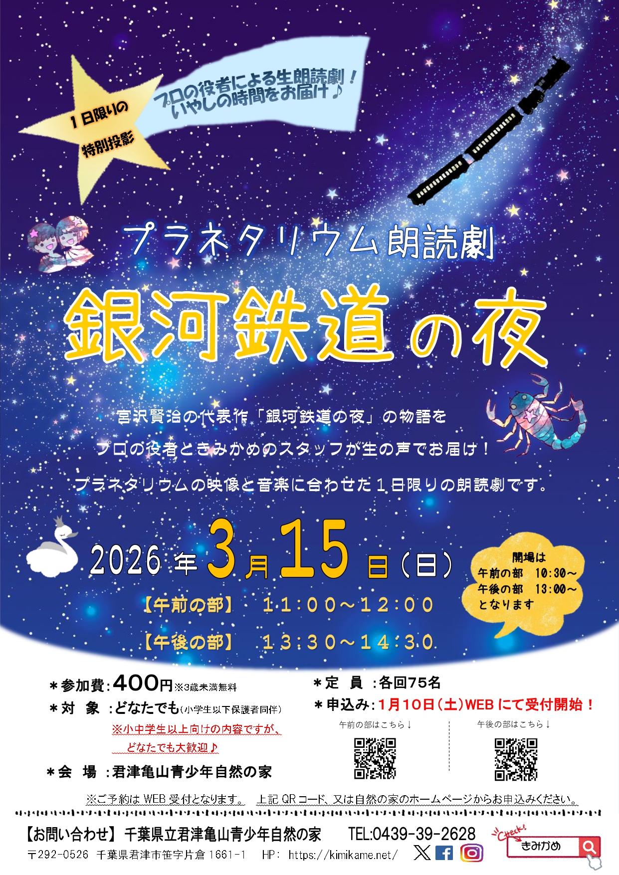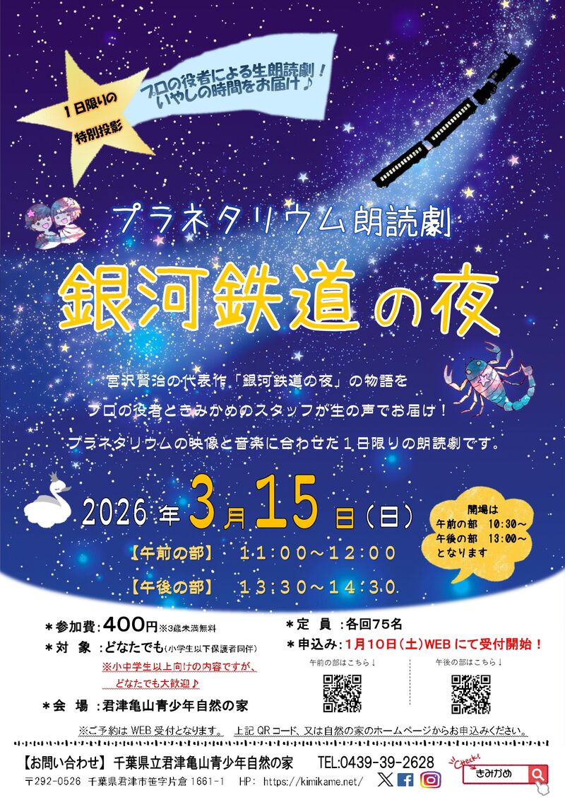3月15日(日)「プラネタリウム朗読劇~銀河鉄道の夜~」の