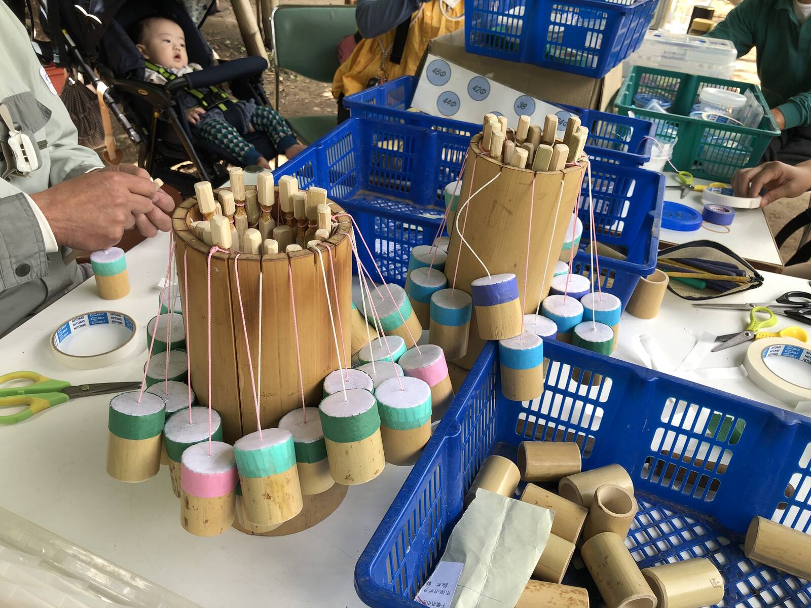 間伐材を使って竹細工の作品を作りました。工夫をするといろいろな作品が出来ました、手に取って見てください!